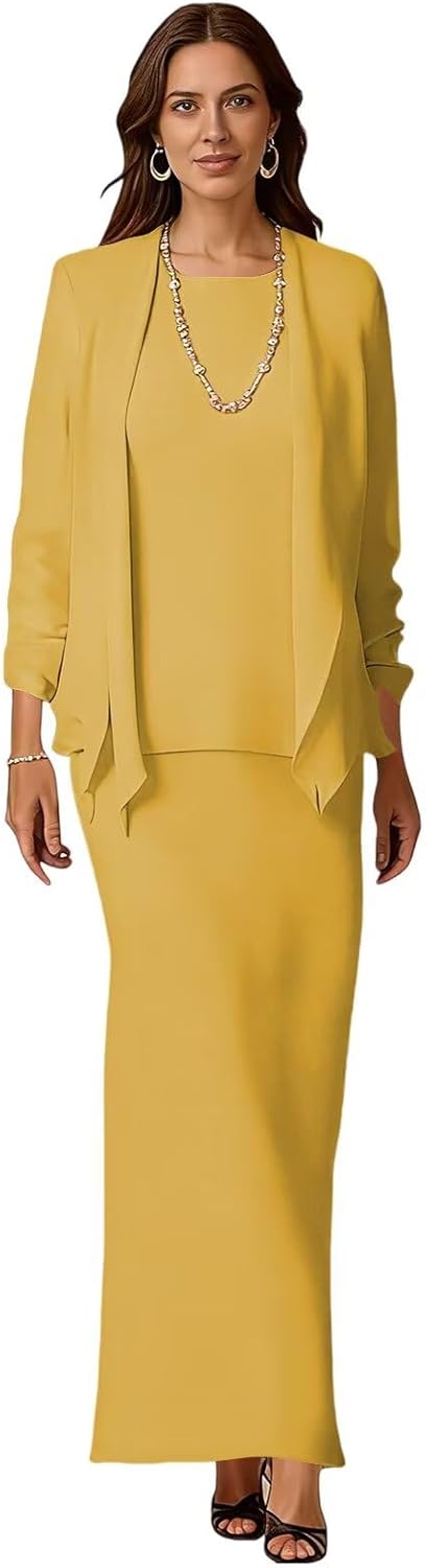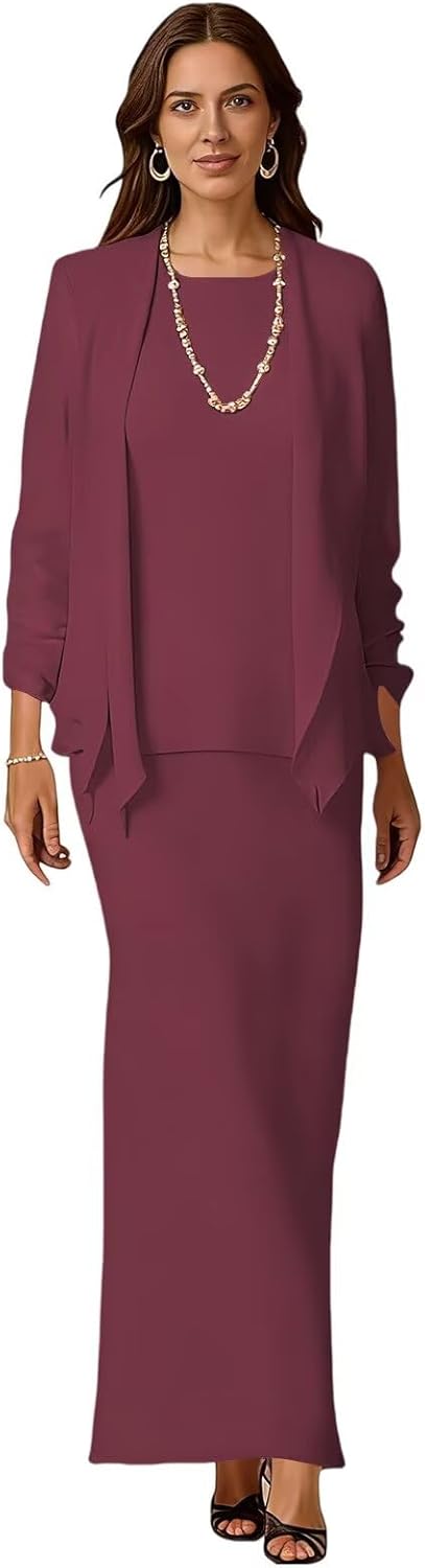 Welcome to our store, we have a variety of different styles for your choice.Chiffon Mother of Bride Dresses Long Sleeve 2 Pieces Formal Wedding Guest Dress with Jacket Evening Party GownFabric: ChiffonNeckline: Scoop NeckSleeve: Long SleeveSilhouette: A LineDress Length: Long, Tea LengthCustom Made Service:If you can't make sure your size,just order the similar size then e-mail us your measurement details as list.1. Bust _____Inch2.Waist _____Inch3.Hips _____Inch4.Shoulder to Shoulder ____Inch5.Shoulder to floor ___Inch6.Height: _____Inch7.The height of your high heel shoes: _____Inch8.The date you need the dress_____Seller Return PolicycIf dress has any problem, please feel free to contact us, we will give you a satisfactory solution.NOTICE: Chiffon Mother of The Bride Dresses, Mother of The Groom Dresses, Formal Dresses, Grandmother of The Bride Dresses, Mother Dresses. The real color of the item may be slightly different from the pictures shown on website because of different monitors