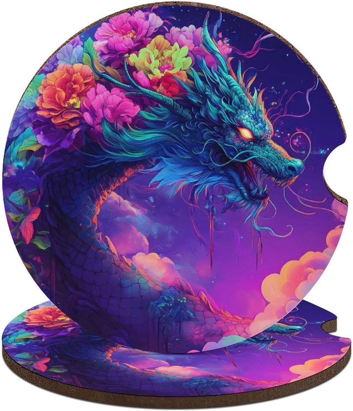 car coasters,coasters set of 6,coasters set of 4,car cup coasters,cup holder coasters for car Round Wood Car Cup Holder Coaster 2.56 Inches Cute Absorbent for Drinks Coaster Auto Interior Decorative Accessories with Funny Pattern Design