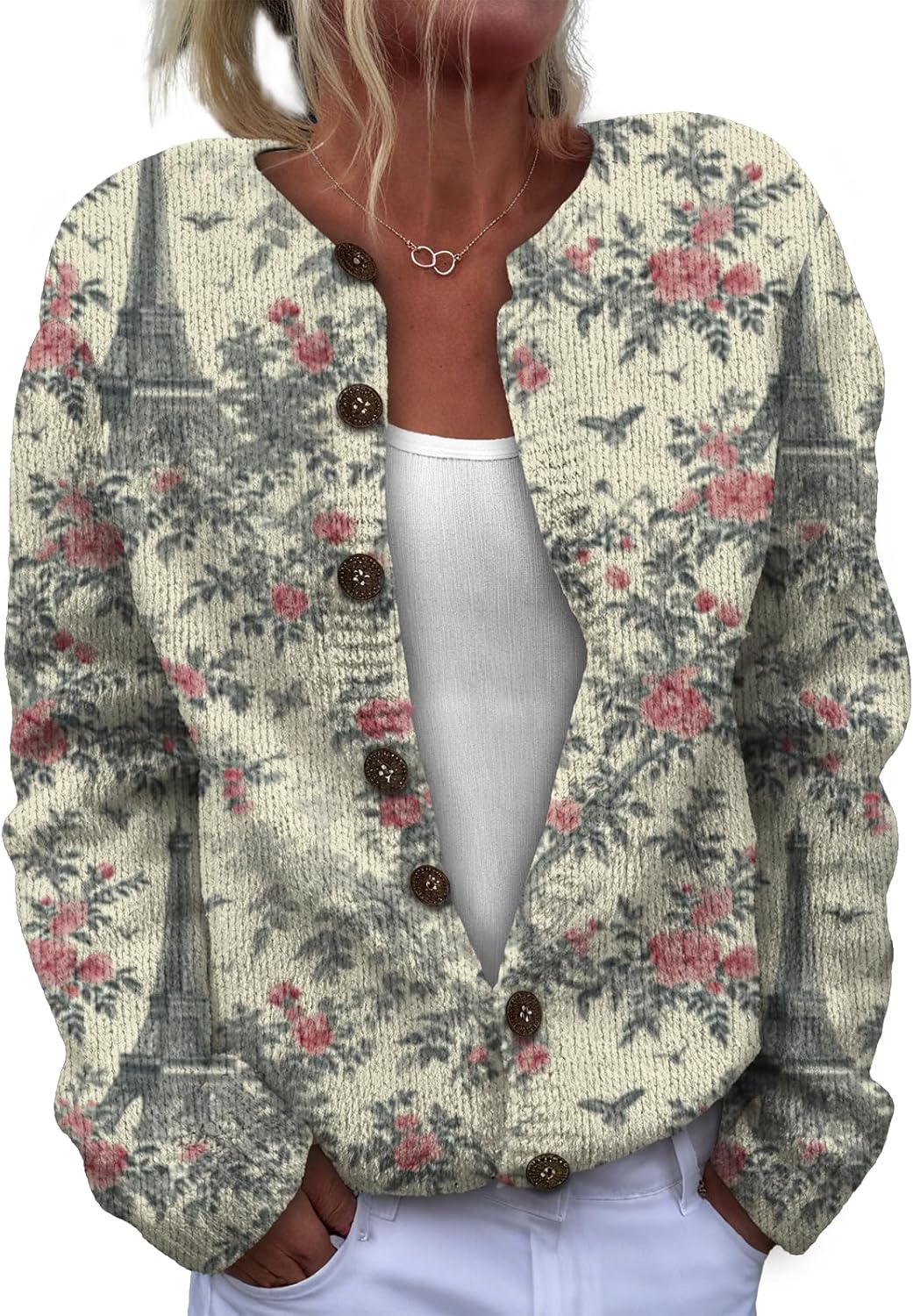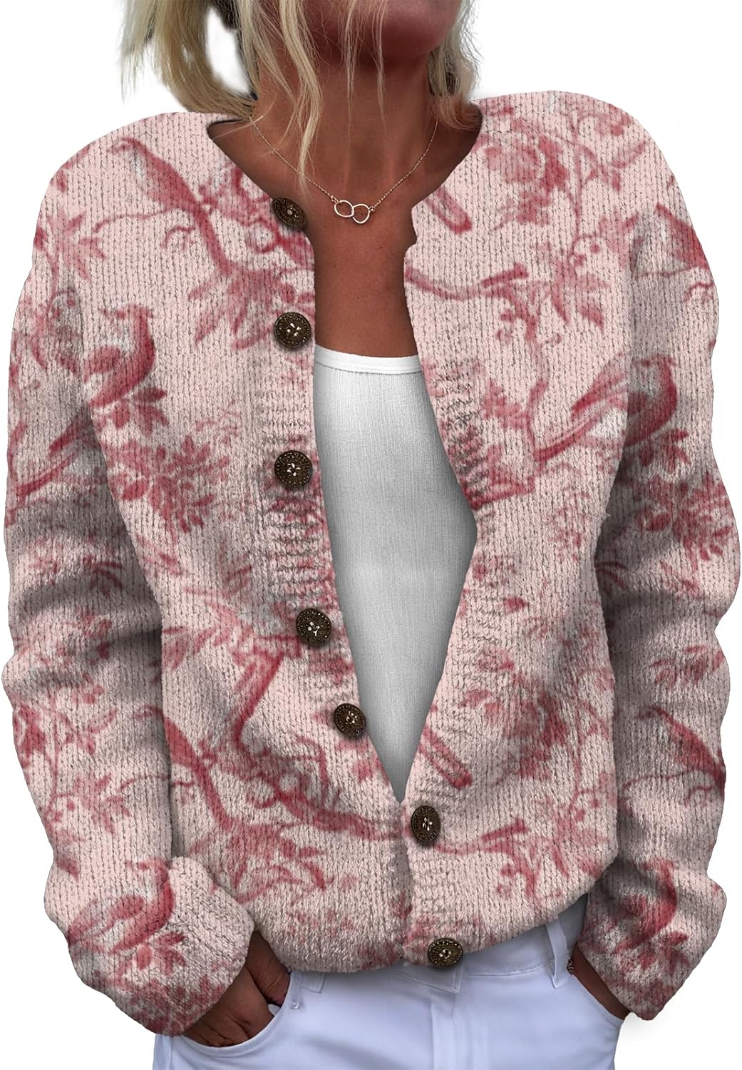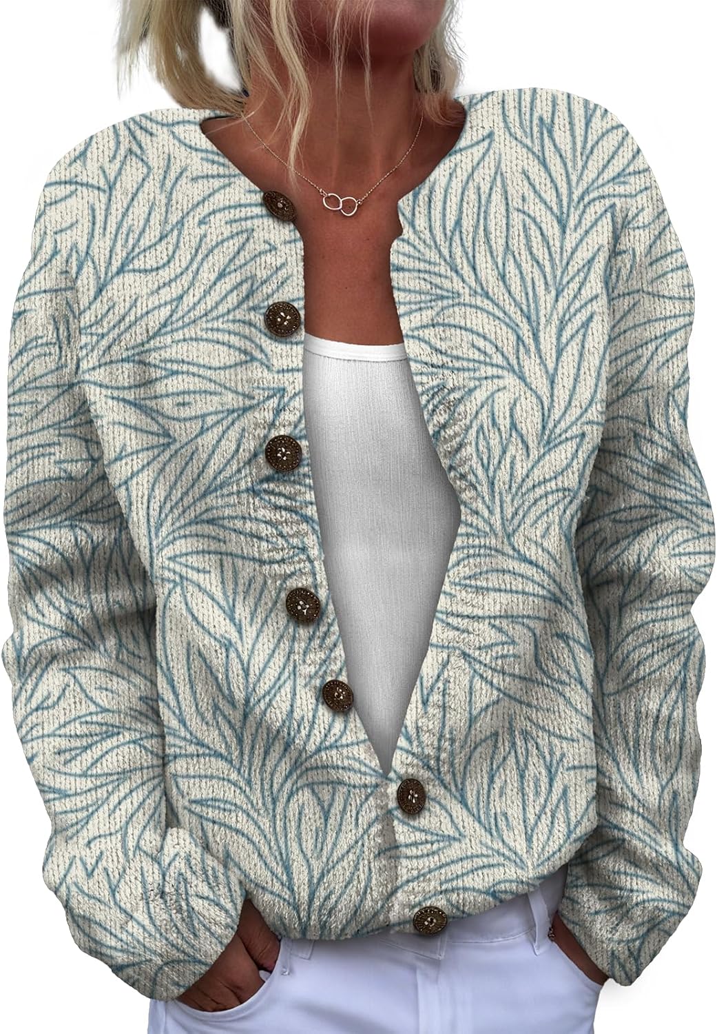 MARSVOVO Trendy Classic Button Up Sweaters for Women Loose Fit Comfy Lightweight Open Front Cozy Vintage Long Sleeve Crew Neck Casual Basic Fall Cardigan Sweater Tops