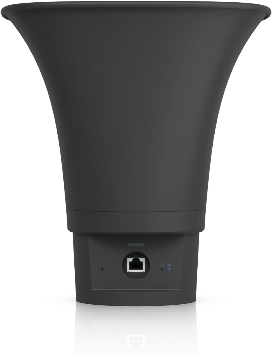 The Ubiquiti AI Horn Speaker is a rugged, all-weather 120 dB speaker with AI alert features. Ideal for security and public address use, it supports PoE+ and can be mounted on walls, corners, or poles using the included articulating mount. High-Volume Output: 120 dB horn speaker with integrated AI alert system PoE+ Powered: Simplifies installation and reduces cabling needs Weatherproof Design: Rated IP66 for reliable outdoor performance Mounting Options: Includes articulating mount for wall and pole installation Rugged Build: Constructed with aluminum and UV-stabilized polycarbonate Manage Remotely: Compatible with UniFi Protect Web and mobile apps